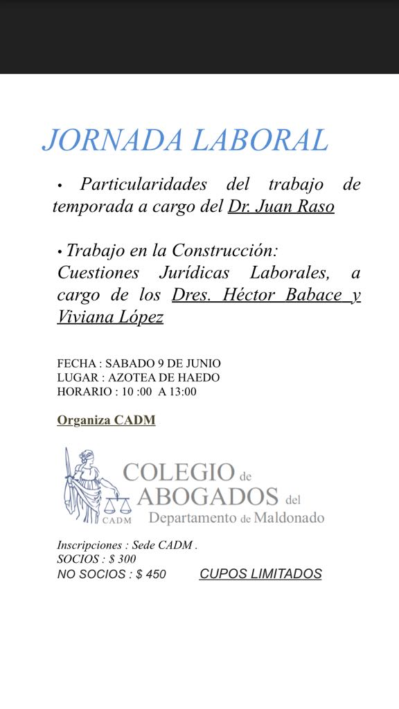Jornada Laboral en Maldonado NEWSLETTER Subscripción a novedades, eventos y noticias de nuestra Fundación Name Email SUBSCRIBIRME REDES SOCIALES Seguínos en : Twitter Facebook Linkedin
