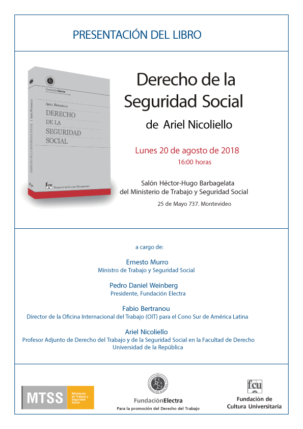 El lunes 20 de agosto, se llevará a cabo la presentación del Libro " Derecho de la Seguridad Social ", de Ariel Nicoliello .