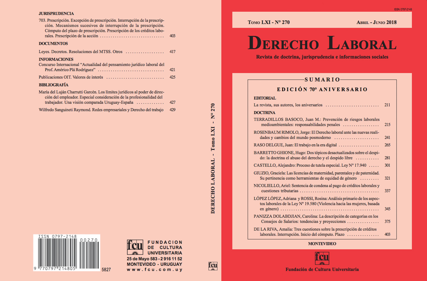 Tomo LXI - Nro 270 Envíe sus datos de contacto a libreria@fcu.edu.uy para suscribirse a la revista Derecho Laboral NEWSLETTER Subscripción a novedades, eventos y noticias de nuestra Fundación Name Email SUBSCRIBIRME REDES SOCIALES Seguínos en : Twitter Facebook Linkedin