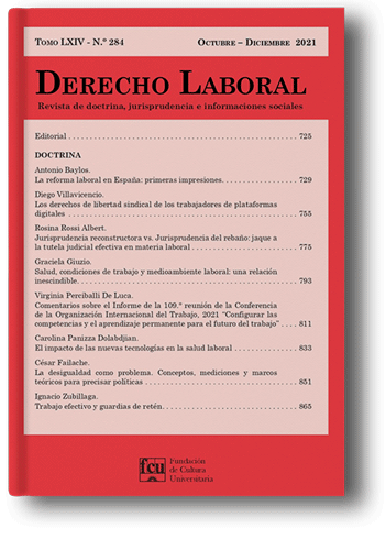 El Nº 284 de la revista DERECHO LABORAL está ya a disposición de lectores/as interesados en