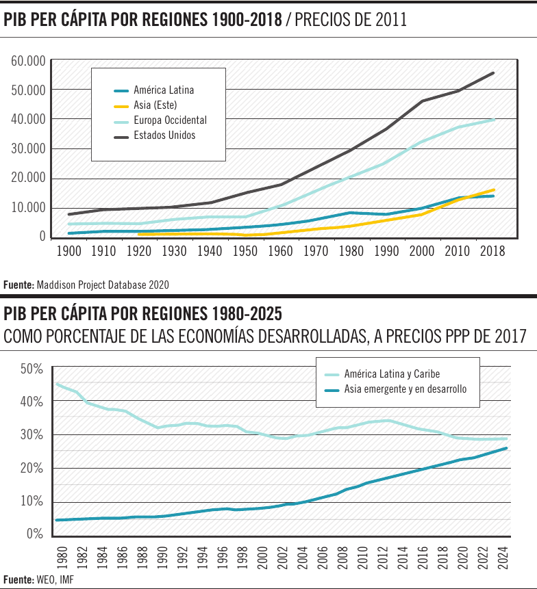 las economías desarrolladas, en tanto que América Latina muestra una trayectoria divergente