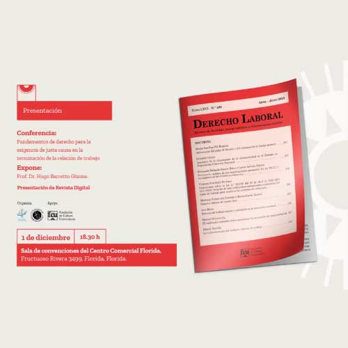 Presentación de la Revista Derecho Laboral en formato digital y Conferencia: “Fundamentos de derecho para la exigencia de justa causa en la terminación de la relación de trabajo”. Expone Hugo Barretto Ghione.