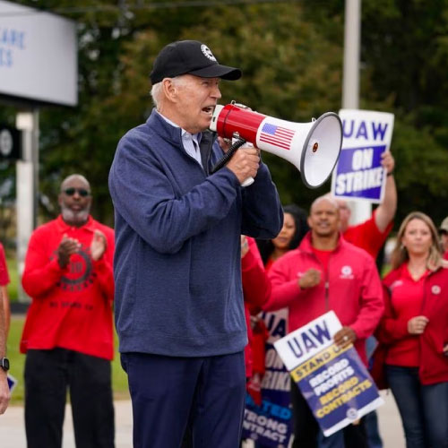 Agrega la agencia que “portando una gorra del sindicato y chocando los puños, Biden comentó